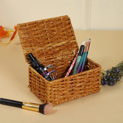 wicker seagrass kauna grass home organizer baskets can hold snacks, skin-care products, cat treats toys, books, socks to place on shelves, kitchen, bathroom vanity, TV bench, wardrobe and dresser. Perfect multifunctional storage solution for any room in the home. Neatly hand-woven natural seagrass baskets with lid, help you keep important things in one place and make your home clean. The lid helps to hide all clutter inside, make your home tidy and neat.